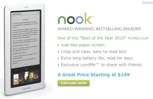 I’d focus on increasing the number of e-books bought by new e-book users, especially those who got an e-reader as gifts and thus didn’t necessarily choose to become e-readers themselves. (If you’re analytics-driven Amazon then you know this number because you’ve asked that question in the buying process.) E-readers seemed to be a popular Christmas gift in 2010; B&N sold more than 1 million e-books on Christmas day alone, according to MainStreet.com.